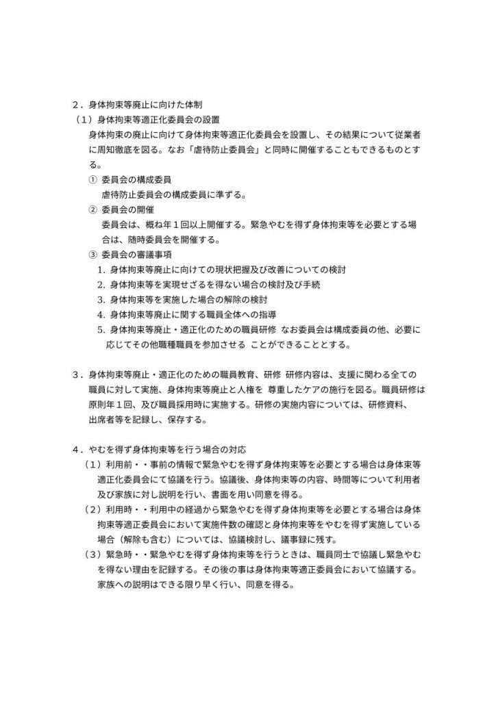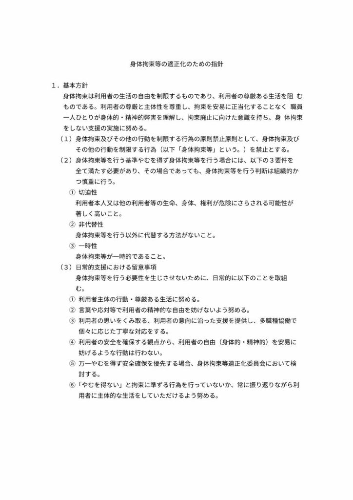 身体拘束等の適正化のための指針